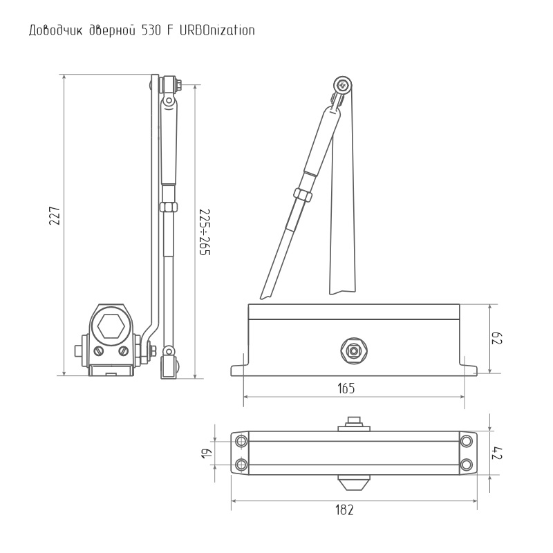 Дверной доводчик 530F с функцией фиксации двери в открытом положении (Hold Open) предназначен для установки на межкомнатные и входные двери весом от 50 до 90 кг.