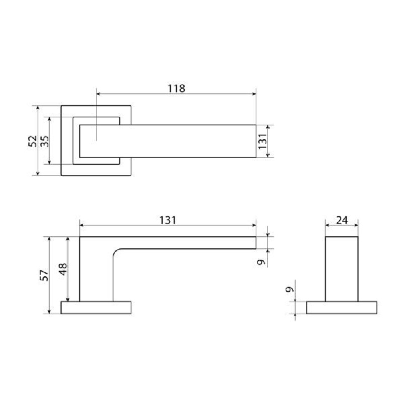Ручка дверная СТАНДАРТ Р72 BL матовый черный квадрат 100мм