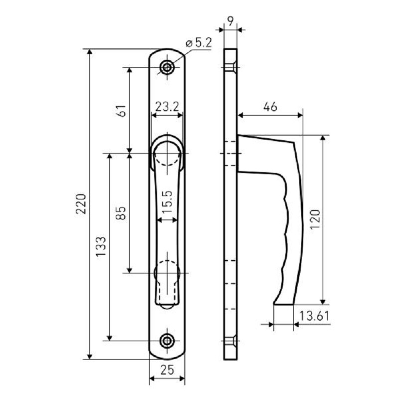 Нажимные гарнитуры предназначены для установки на алюминиевые, пластиковые, стальные и деревянные двери. Крепление на двери - сквозное винтовое. Толщина профиля 67-76 мм. Совместимы с замками KALE, KFV, GU и другими. Покрытие - ППМ по каталогу RAL. Нажимной гарнитур подпружиненный с межосевым расстоянием 85 мм с планкой 25 мм.