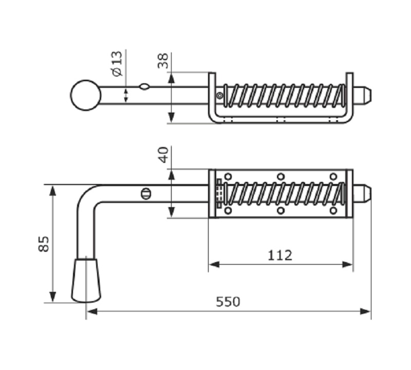 Засов ДОМАРТ пружинный (110) 550мм мод.2 цинк d13 ...