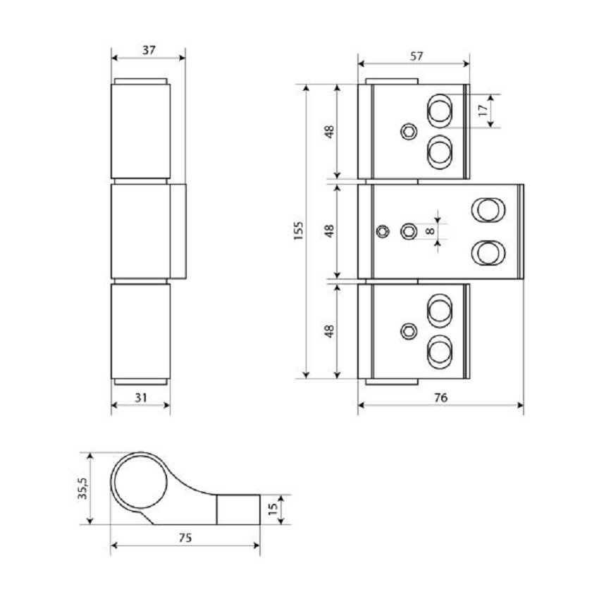Петля БУЛАТ ПН-153,5х96 для алюм. дверей. белый,9016, 1 подшип., 3-х секц. ,(U2-P1A) (16,2)