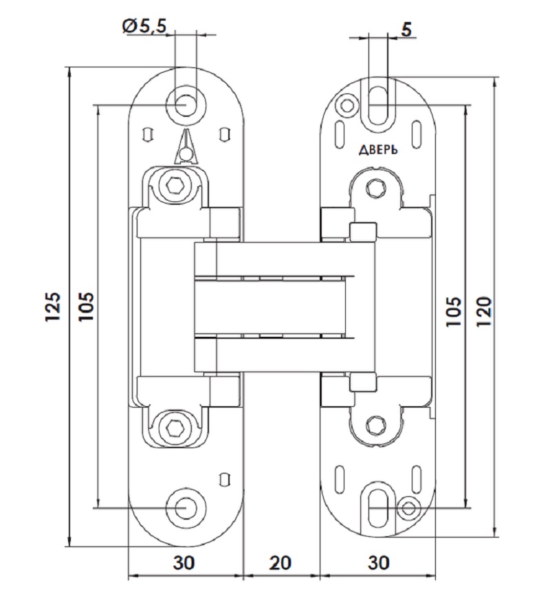В комплект входят: Скрытая петля (1шт.) + Комплект декоративных накладок + инструкция по монтажу.