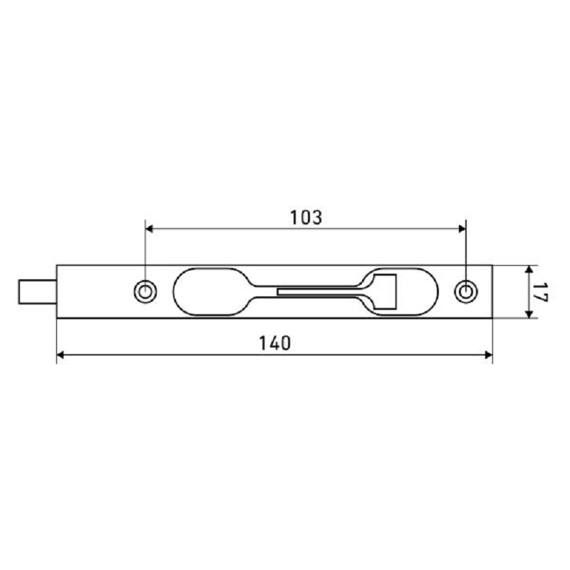 Шпингалет врезной торцевой для деревянных дверей. Материал - сталь, гальваническое покрытие. Длина корпуса - 140 мм, вылет ригеля - 12 мм. В комплекте ответная планка и крепежные шурупы.