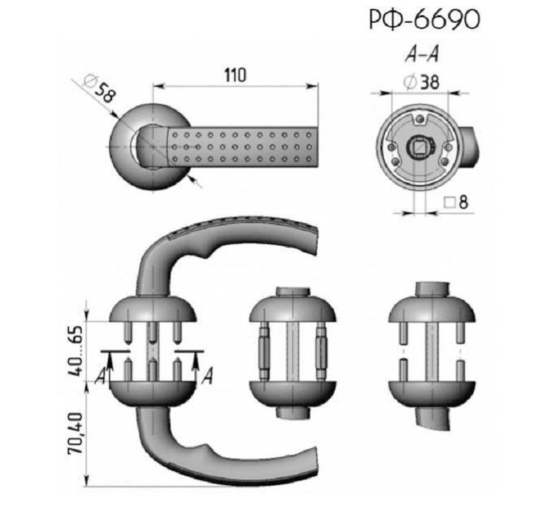 Соединительный квадрат между ручками металлический сечением 8х8мм.