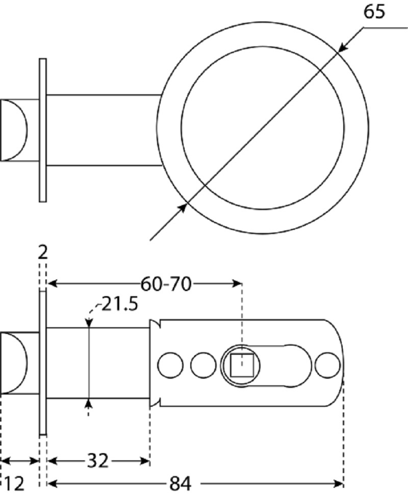 Ручка-защелка высокого качества для межкомнатных дверей. Форма ручки - кнопка, круглая. Материал ручек и накладок- нержавеющая сталь, полимерное покрытие. Предназначена для дверей толщиной 40 мм. Регулируемое расстояние от края двери до оси ручек 60-70 мм. Скругленная защелка размерами 14х19 мм с вылетом 12 мм. Габариты корпуса врезной защелки 85х23х20 мм
