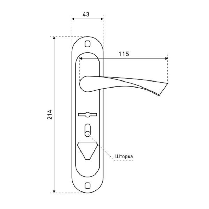 Ручка на планке под сувальдный механизм. Материал - алюминий, сталь. Межосевое расстояние - 42 мм, расстояние от ручки до вертушки - 89 мм, высота планки - 214 мм, длина ручки - 115 мм. В комплект входят 2 винтовые стяжки по 75мм и удлиненный квадратный штырь (8х8 мм) 120 мм.