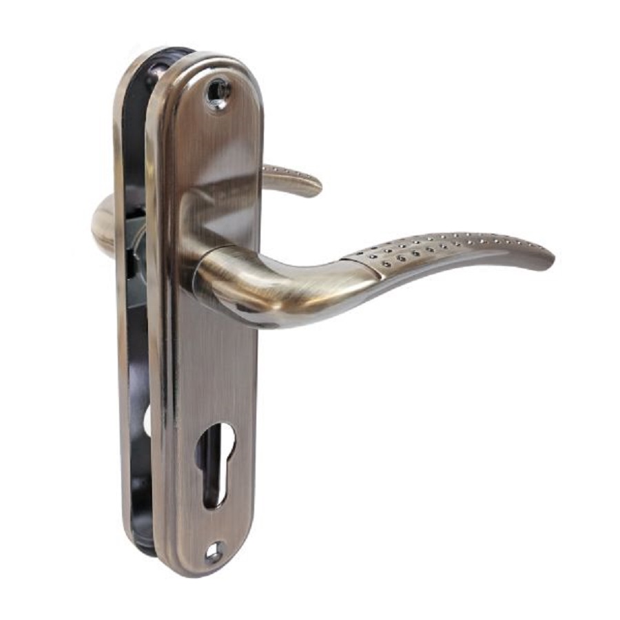 Комплект ручек, подпружиненный, на планке под цилиндровый механизм замка. Предназначен для установки на деревянные и металлические двери толщиной 35-45 мм. Имеет гальваническое покрытие. Материал комплекта ручек - алюминиевый сплав, материал планок - сталь. Комплектуются 2 винтовыми стяжками и квадратным стержнем 8х8 мм. Гарантийный срок – 3 года.