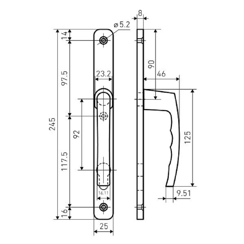 Нажимные гарнитуры предназначены для установки на алюминиевые, пластиковые, стальные и деревянные двери. Крепление на двери - сквозное винтовое. Толщина профиля 67-76 мм. Совместимы с замками KALE, KFV, GU и другими. Покрытие - ППМ по каталогу RAL. Нажимной гарнитур подпружиненный с межосевым расстоянием 92 мм с планкой 25 мм.