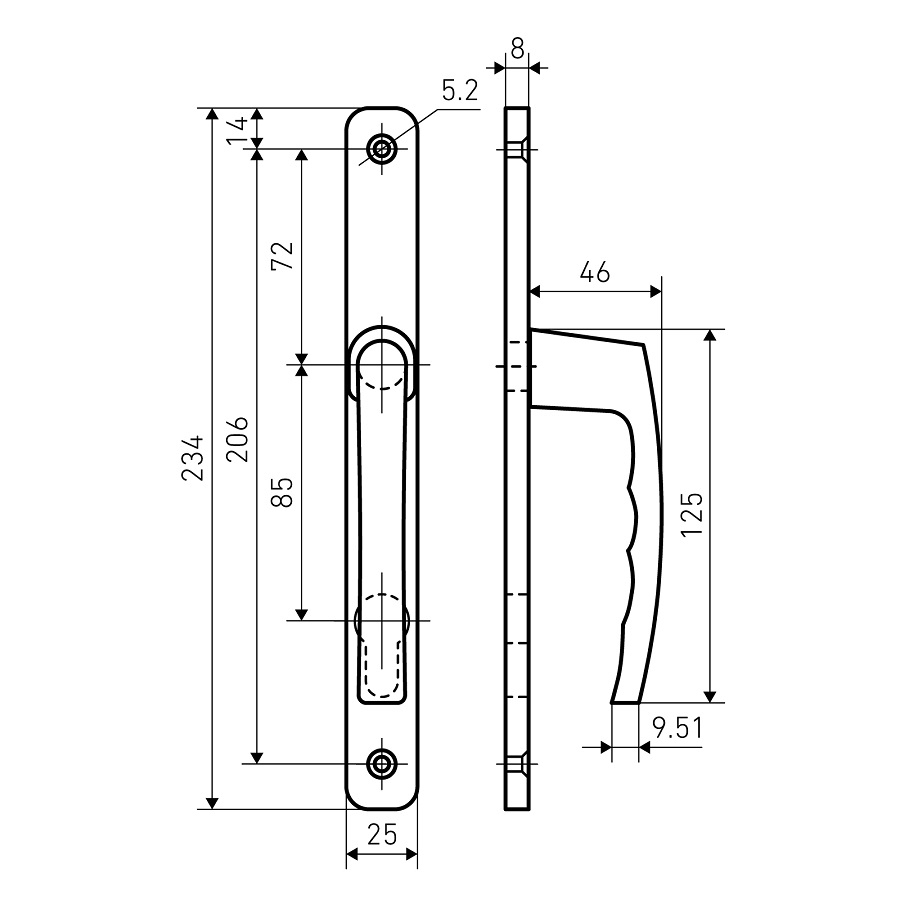 Нажимной гарнитур подпружиненный с межосевым расстоянием 85 мм с планкой 25 мм.