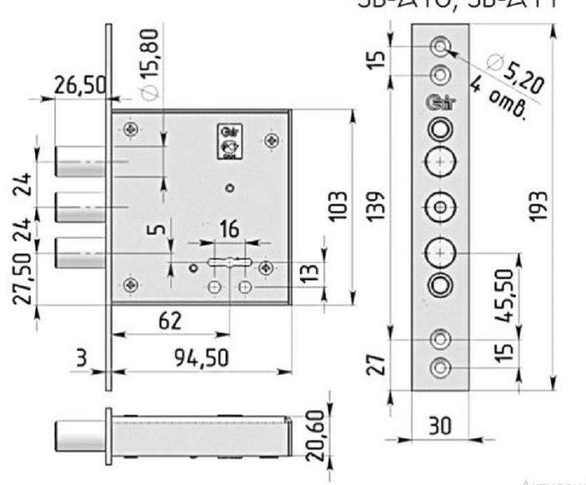Замок врезной КРИТ ЗВ-А10-4Л Бульдорс ...
