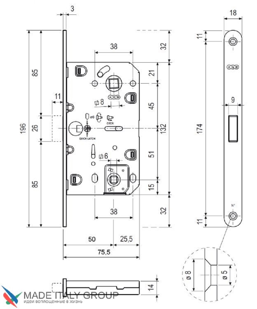 Защелка врезная WC серии MEDIANA