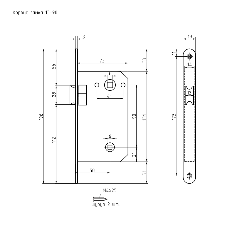 Корпус замка предназначен для деревянных межкомнатных дверей. Бэксет 50 мм, межосевое расстояние 90 мм. Запирается при помощи фиксатора (в комплекте не идет, приобретается отдельно). Гальваническое покрытие лицевых деталей. Обратите внимание, что ответной планки в комплекте нет, приобретается отдельно.