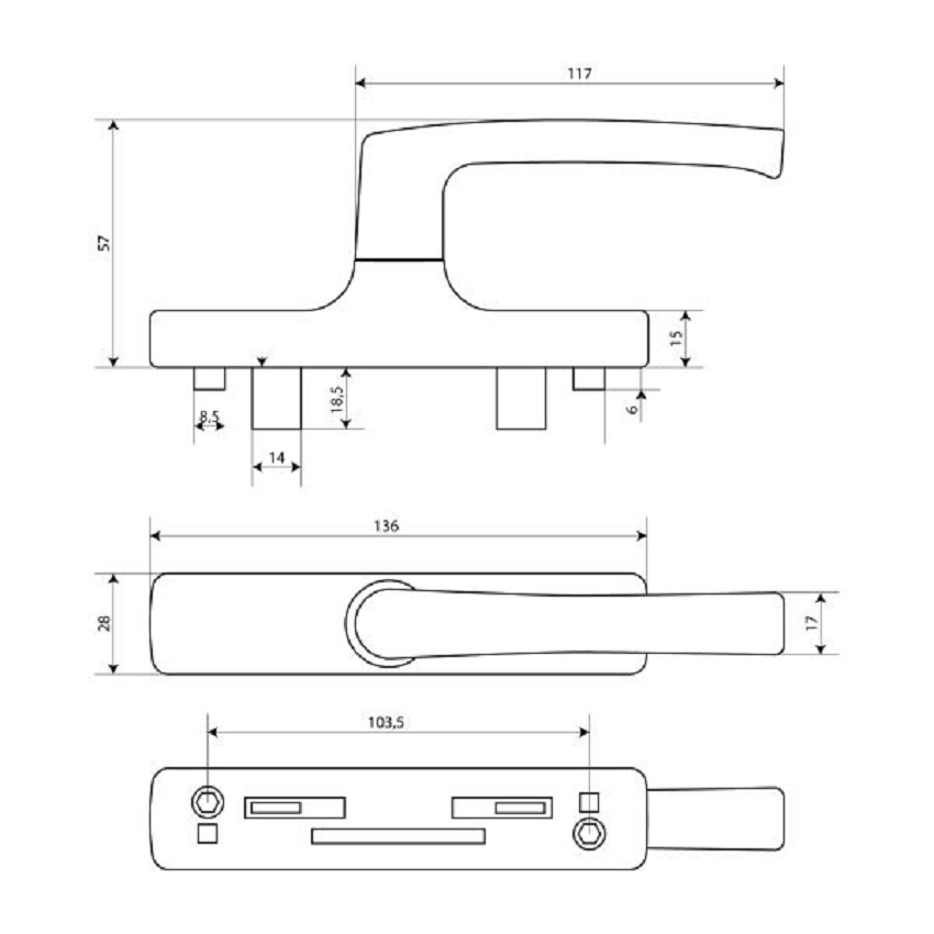 Ручка оконная с 2 ригелями для алюминиевого. профиля Р400